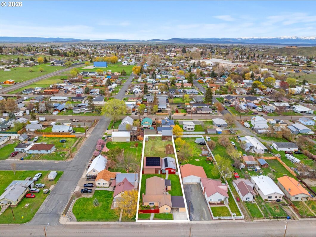 Fully remodeled and move-in ready, this thoughtfully updated home in Baker City offers space, function, and versatility on a rare in-town lot nearing half an acre. Every detail has been carefully considered, creating a comfortable, turnkey property with quality upgrades throughout.The home features a bright, efficient layout with mesquite click-lock flooring through the main living areas and primary bedroom, with carpet in the additional bedrooms. The primary suite includes a lighted closet. A renovated fireplace anchors the living room, while a Blaze King Princess wood stove (updated to code) and new gas furnace provide efficient heating. Interior upgrades include all new textured sheetrock, recessed lighting throughout, and a ceiling fan in the den.The fully updated kitchen includes new cabinetry, backsplash, a one-piece granite countertop set on a 45-degree layout, and a pantry off the carport entry. A new sunroom off the den adds flexible living space with access to both the carport and shop areas.Improvements continue outside with a new 6′ x 12.5′ deck, walkway to the street, newly painted fenced yard, and a renovated one-car carport with new driveway.The property shines with exceptional shop space: a 1,085 sq ft three-bay machine shop with a 6-inch reinforced concrete floor, plus an 864 sq ft one-bay woodshop with a Fisher stove and new stovepipe—both with overhead doors.Additional upgrades include new solar power, updated electrical panels, and modernized systems throughout.A rare opportunity to own a fully improved property with shop space, land, and modern updates—all within Baker City.