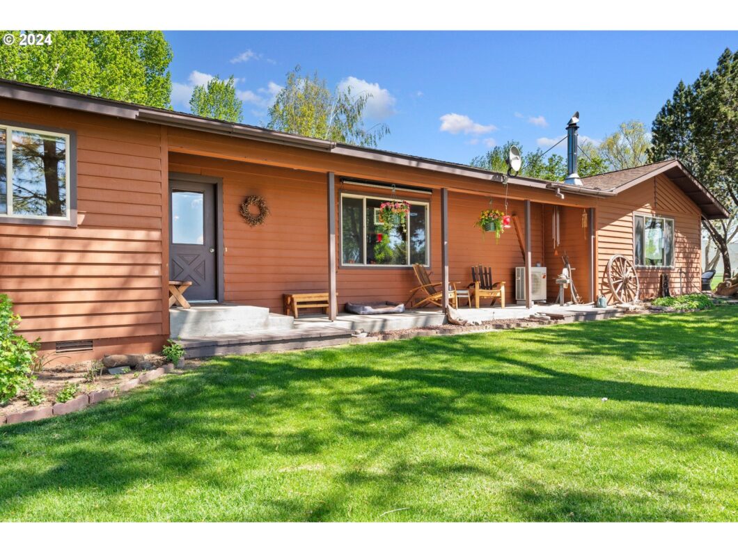 Set amidst the serene beauty of Baker City and under the sweeping vistas of the Elkhorn and Wallowa Mountain ranges, this sprawling 38.18-acre property offers a perfect blend of agricultural productivity and comfortable living. At its heart is a 36-acre, highly productive irrigated alfalfa field, promising abundant harvests and agricultural opportunities.The residence, built in 1980, provides a spacious and welcoming environment with 2568 square feet of living space. It features a ranch-style layout with modern amenities, a wood-burning fireplace for cozy evenings, and large windows framing the breathtaking mountain landscapes. The primary bedroom boasts newly textured walls and fresh paint, an en suite bathroom designed with tile, granite, and Bowman cabinets, and a private door to the deck/patio. Opposite side of the home, sit 2 bedrooms and a second primary, with views from every window. Accompanying the main home is a detached, nicely finished and well-maintained, 1,080 square foot garage, as well as an oversized 55×35 shop, ideal for a variety of uses from workshops to storage. Aside from the lush alfalfa surrounding the home, the immediate landscape offers a park-like setting, where there are trees scattered throughout, providing shade and beauty, appreciated as you sit on the various porches and patios taking in the serenity and views. The property is enhanced by a private driveway, ample space for RV parking, and opportunity for a chicken coop or small farm animal quarters, making it a haven for both relaxation and adventure. Just a short drive from the property, less than 10 minutes, lies the charm and convenience of downtown Baker City, offering a blend of local dining, shopping, and cultural experiences.This property does not just promise a home, but a lifestyle in tune with nature and the tranquility of rural Oregon. Whether you’re looking for a family home or an investment in sustainable agriculture, 42717 NYE RD is a property that offers it all.